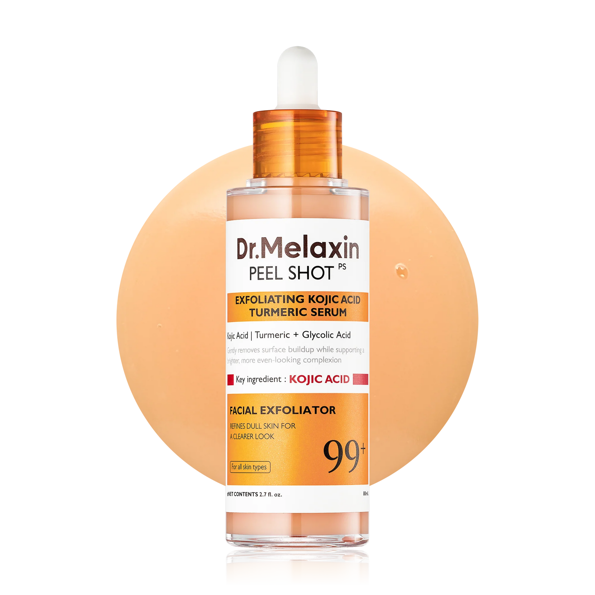 Peel Shot™ Kojic Acid Turmeric Serum gently exfoliates dead skin cells and unclogs pores using AHA + PHA — revealing a fresh, healthy glow without irritation.